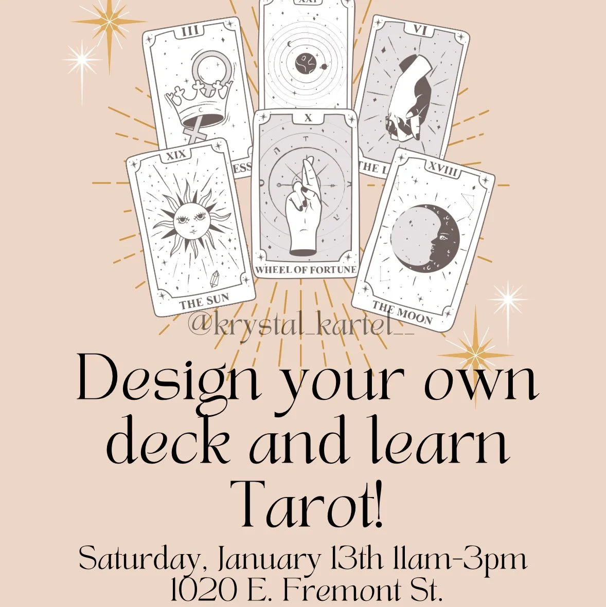 Back to All Events Krystal Kartel: Design your own deck & learn tarot! Saturday, January 13, 2024 11:00 AM 3:00 PM Fergusons Downtown 1028 Fremont Street Las Vegas, NV, 89101 United States (map) Google Calendar ICS @Krystal_Kartel_
