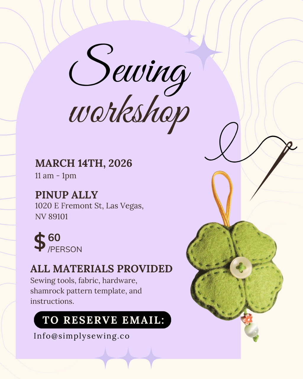 Pinup Ally: Sewing Workshop Saturday, March 14, 2026 11:00 AM 1:00 PM Fergusons Downtown 1028 Fremont Street Las Vegas, NV, 89101 United States (map) Google Calendar ICS