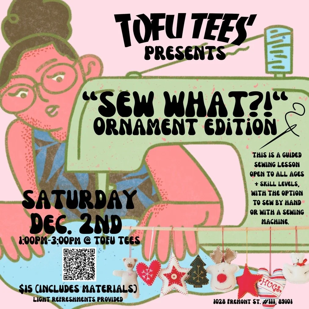 Tofu Tees: Sew What?! Ornament Edition Saturday, December 2, 2023 1:00 PM 3:00 PM Fergusons Downtown 1028 Fremont Street Las Vegas, NV, 89101 United States (map) Google Calendar ICS @TofuTees