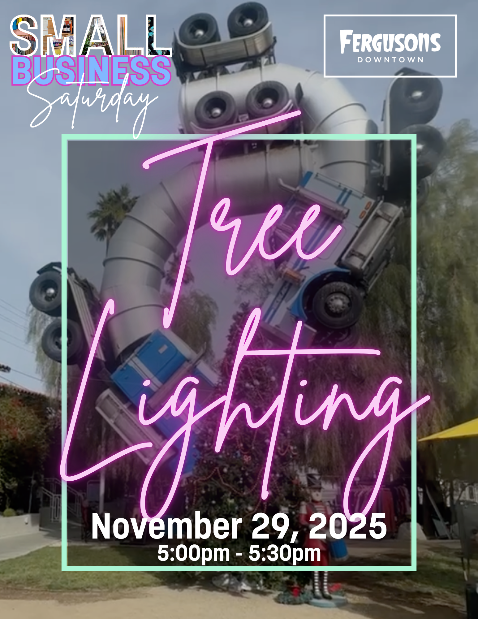 Back to All Events Small Business Saturday: Tree Lighting Saturday, November 29, 2025 5:00 PM 5:30 PM Fergusons Downtown 1028 Fremont Street Las Vegas, NV, 89101 United States (map) Google Calendar ICS